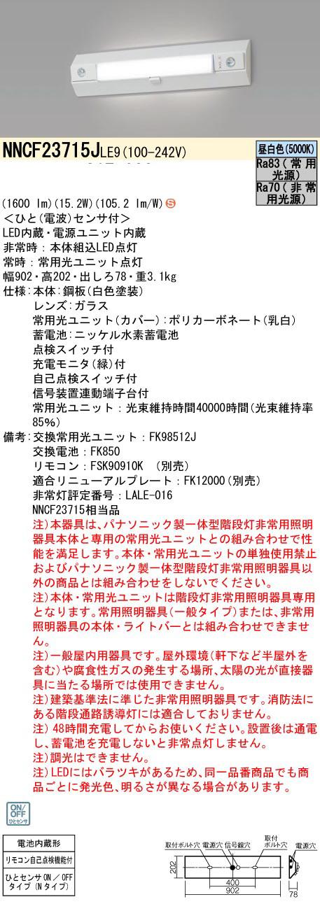 NNCF23715J LE9 || LEDÈó¾ïÍѾÈÌÀ´ï¶ñ Panasonic °ìÂη¿³¬ÃÊÅô ¥ï¥¤¥É¥¿¥¤¥× ¤Ò¤È¥»¥ó¥µON/OFF¥¿¥¤¥×(N¥¿¥¤¥×) 20·Á ÊÉľÉÕ·¿ ¾ï»þŽ¥Èó¾ï»þÅÀÅô(Ĺ»þ´Ö60ʬ´Ö) Hf16·ÁÄê³Ê´ï¶ñ1ÅôÍÑ ÃëÇò¿§ ÆýÇò¥é¥¤¥È¥Ð¡¼ ¡Ú¼õÃíÀ¸»ºÉÊ¡Û(µìÉÊÈÖ:NNCF23715 LE9)[mw]
