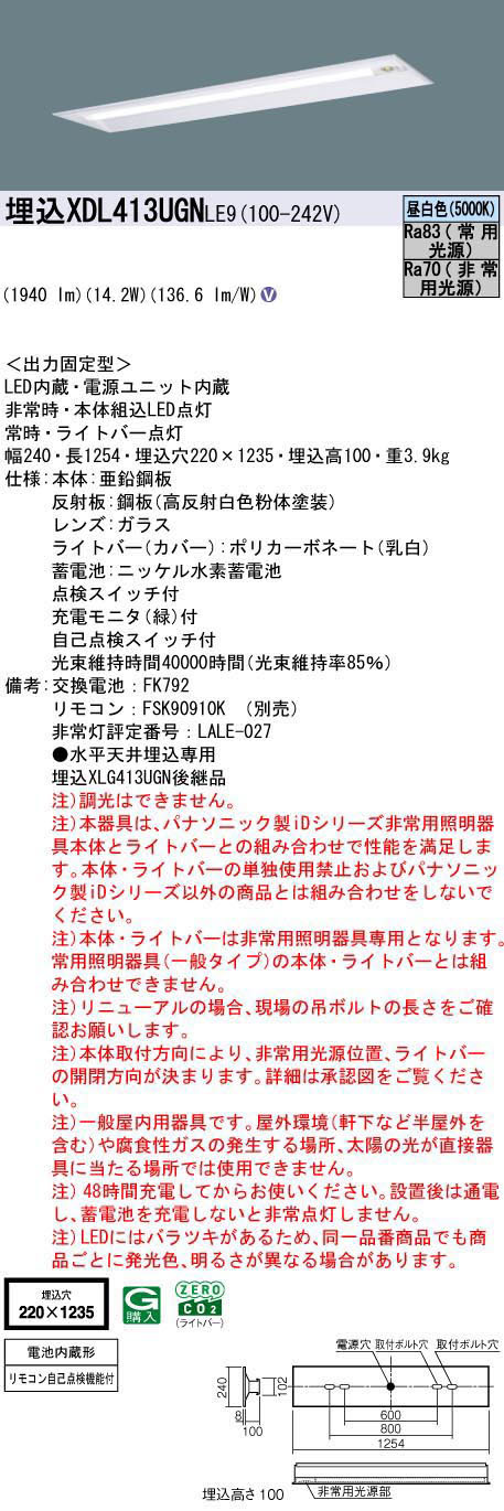 XDL413UGN LE9 || °ìÂη¿LEDÈó¾ïÍÑ¥Ù¡¼¥¹¥é¥¤¥È Panasonic iD¥·¥ê¡¼¥º[¥ê¥Ë¥å¡¼¥¢¥ëÀìÍÑ´ï¶ñËÜÂÎ] ¡ÚËä¹þ²¼Ì̳«Êü·¿W220/Èó¾ï»þLED°ìÈ̽ÐÎÏ·¿/ÅÅÃÓÆâ¢·¿¡Û 40·Á ¾ï»þŽ¥Èó¾ï»þÅÀÅô(30ʬ´Ö) FLR40·Á´ï¶ñ1ÅôÀáÅÅ¥¿¥¤¥× 2000lm ÃëÇò¿§ Ëä¹þ·ê(220¡ß1235mm)(µì:XLG413UGN LE9)¡ÚÂå°úÉԲĎ¥¼õÃíÀ¸»ºÉÊŽ¥¥¥ã¥ó¥»¥ëÉԲġÛ[nd]