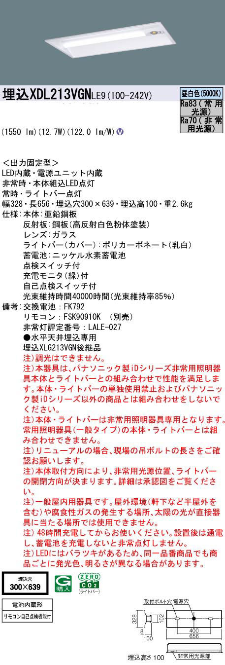 XDL213VGN LE9 || °ìÂη¿LEDÈó¾ïÍÑ¥Ù¡¼¥¹¥é¥¤¥È Panasonic iD¥·¥ê¡¼¥º[¥ê¥Ë¥å¡¼¥¢¥ëÀìÍÑ´ï¶ñËÜÂÎ] ¡ÚËä¹þ²¼Ì̳«Êü·¿W300/ÅÅÃÓÆâ¢·¿¡Û 20·Á ÈóÄ´¸÷ ¾ï»þŽ¥Èó¾ï»þÅÀÅô(30ʬ´Ö) FL20·Á´ï¶ñ2ÅôÁêÅö¥¿¥¤¥× 1600lm ÃëÇò¿§ Ëä¹þ·ê(300¡ß639mm) ¼«¸ÊÅÀ¸¡µ¡Ç½ÉÕ(µì:XLG213VGN LE9)[nd]¡¡20·Á Ëä¹þ²¼Ì̳«Êü·¿W300 ÃëÇò¿§
